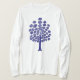 Uma mão desenhou um modo de árvore original em uma caneta e um estilo de tinta com pedaços de folhas dispersos pelos galhos.
