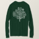 Desenho de uma árvore de aparência um tanto pouco natural em branco, as formas fazem com que pareça um pouco com uma cruz entre uma árvore e um diagrama de circuito. Ou talvez um mapa de uma rede de computadores ou site. O motivo também é repetido nas costas. Entretanto, essa camisa pode ser personalizada.
