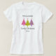 Esta adorável camiseta de Natal da Família pode ser personalizada com o seu nome familiar. Três árvores festivas em tons de rosa, roxo e verde, seu nome de família, e o ano estão todos no design.