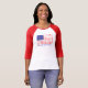 Camiseta feminina mangas raglan 3/4 da Bella+Canvas, Branco/Cor-de-rosa, Adulto P