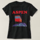 Aspen, carro vermelho sobre a montanha. Simples camiseta preta para mulheres com viagem design.