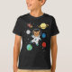 O gato está flutuando no espaço com planetas e foguetes. Gatos no espaço veem a Terra, Marte e a Lua. Saturno e Urano também estão na galáxia. Um astronauta engraçado com gatinhos.