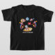 Meninos Black Personalised Outspace Astronaut T-Shirt . Todas as coisas espaciais que os meninos adoram, uma nave espacial, planeta, bandeira, lua, estrelas atiradoras. Camisa excelente para vestir à festa de aniversário espacial.