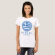 Atenas, Camiseta branca, design, em angústia Grécia, com cartaz branco, de Grécia aflita, com a bandeira nacional da dentro, um círculo grego azul asteca. Esta camiseta é ideal se você é grego ou vestir enquanto está aproveitando suas férias em Atenas, Grécia. Você também pode dar isto como um presente da Grécia para qualquer um que goste desta camiseta.