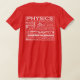 T-shirt física com Atom à frente, Com as seguintes palavras no verso - Física, Aceleração, Massa, Partículas, Termodinâmica, gravidade, assombro, big bang, buracos negros, eletromagnéticos, maxwell, mecânica quântica, cordas, radiação, tesla, força, e=mc2, gás, átomo, próton, nuclear, hertz, radiação, gama, absoluto, nanotecnologia, órbita, frequência, peso