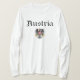 Tipo de " Áustria" e crista nacional em um estilo limpo. Aplique este design a toda a camisa. Recorde que o design não pode trabalhar em todos os estilos e cores da camisa. A posição do design pode deslocar segundo o estilo da camisa escolhido. Clique "personalizam-no" botão para ajustar a posição do design ao seu gosto.