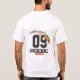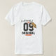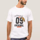 Esta imagem mostra um homem vestindo uma camiseta branca, de manga curta, com um design gráfico ousado e estilizado. O design central é o grande número "09" numa fonte grossa, preta e achatada com um contorno branco, que lembra os números de camisolas esportivas.