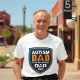 Um design ousado e masculino para esta camiseta Pai de Consciência do Autismo, com um emblema de blindagem recheado de peças de quebra-cabeça, representando força, proteção e defesa. A frase "Pai Autismo: Protetor, Advocate, Herói" aparece de forma destacada em caracteres fortes e achatados. Esta camiseta é perfeita para pais que orgulhosamente se mantêm ao lado de suas crianças autistas como seus maiores defensores e protetores.