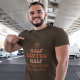 "Meia metade do café, metade do analista de danos automáticos" na t-shirt marrom tem uma vibração divertida e legal, mas outras cores da camisa estão disponíveis. A design é uma xícara de café fumante em cima do texto da tipografia retrô com vários tons marrons de café.