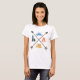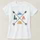 Um legal design para aventureiros, com uma montanha, fogueira, árvores e tendas com duas setas.