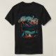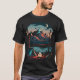 Um legal design para acampar amantes que apresentam uma paisagem de montanha por um lago à noite com uma tenda.