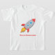 Um t-shirt bonito para os astronautas pequenos que são acima para uma aventura do espaço que explora a galáxia dos planetas e das estrelas! Este design colorido e atrativo vem com um navio do foguete que sopra fora no espaço. Personalize com nome da criança.
