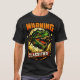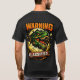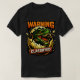 Um vibrante design gráfico apresentando um Tyrannosaurus Rex emergindo de um ovo rachado. A face vividamente detalhada do dinossauro é posicionada de forma proeminente, mostrando dentes afiados e escamas intrincadas. A paleta de cores combina verdes e pretos com respingos de laranja, criando um contraste marcante contra a casca amarelada do ovo. O fundo é minimalista, permitindo que o assunto principal se destaque. Elementos de texto, incluindo 'AVISO' e 'CLASSIFICADO', são incorporados em fontes em negrito, adicionando um efeito dramático. Fontes de luz parecem destacar as características do dinossauro, intensificando sua expressão feroz. A composição é dinâmica, sugerindo movimento e energia como se a criatura estivesse se libertando da contenção.