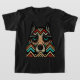 Este é um rosto de lobo decorativo feito à mão e estilizado com padrões astecas em cores preta, vermelha, turquesa e bege.