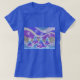 Uma paisagem de inverno moderna e estilizada com pinheiros foscos e flocos de neve espumantes. Camiseta com uma cinza púrpura, azul, prata e design branco personalizável para você personalizar com seu próprio texto, imagens e ideias. Imagem criada usando um desenho a lápis colorido melhorado digitalmente.