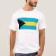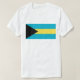 Bandeira das Baamas. A bandeira das Bahamas apresenta um triângulo equilátero preto à esquerda, que representa a unidade e a determinação das pessoas das Baamas. O triângulo é orientado para três faixas de largura igual simbolizando áreas de recursos naturais; duas faixas aquamarinas no topo e no fundo da bandeira que representam o mar e uma faixa de ouro que representa a terra. A bandeira foi adotada em 10 de julho de 1973.
