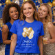Para uma camiseta azul escura. Personalize e adicione um nome e uma idade. Cartas brancas. Decorado com balões ouros.