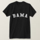 Verifique para fora este t-shirt de Bama! É você de Alabama? Você tem um amigo ou um membro da família que amem Alabama? Em caso afirmativo, este t-shirt da "bandeira" é exatamente o presente que você está procurando! As características de design "Bama" na rotulação branca arqueada na pia batismal clássica da faculdade.