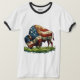 Bison Americano Buffalo com uma bandeira Americana no seu cabelo Comendo erva num campo num design de óleo pintado Deixe este design divertido divertido entreter falar por você.