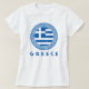 Camiseta branca, de grécia, com a bandeira nacional da dentro, um círculo grego azul asteca. Esta camiseta é ideal se você é grego ou vestir enquanto está aproveitando suas férias na Grécia. Você também pode dar isto como um presente da Grécia para qualquer um que goste desta camiseta.