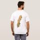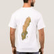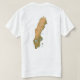 A parte dianteira deste t-shirt carrega uma bandeira sueco pequena com sua amarelo familiar cruz deslocada em um fundo azul, quando a parte traseira indicar um mapa de alivio da suecia. Disponível em t-shirt, em camisolas, em polo, em longo-Capas e em mais.