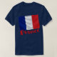 Um design estilizado da bandeira francesa azul, branca e vermelha com a palavra França em letras de script. País, lugares, patrimônio.