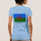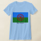 O congresso Romani do mundo adotou uma bandeira Romani que fosse respeitada por todo o Roma o mundo sobre. Compreende de cores tradicionais azuis e verdes com a roda vermelha no centro. O azul é o céu azul e os céus. O verde é a terra, orgânico e crescimento. O azul simboliza valores espirituais eternos; os valores terrestres verdes. A roda simboliza no centro o movimento e o progresso. Alguns e todos os direitos feitos da venda desta camisa serão doados ao ERRC. http://www.errc.org/cikk.php?cikk=1990