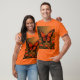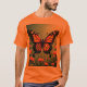Uma imagem brilhante e de alta resolução de uma borboleta vibrante, multicolorida, com um belo e intrincado design sobre suas asas, cercada por algumas flores e folhas colocadas estrategicamente. A borboleta deve ser representada em uma pose dinâmica e lúdica, como se estivesse prestes a voar, com suas asas espalhadas e seu corpo inclinado levemente para um lado. O humor geral da imagem é iluminado e humorístico, com foco em capturar o espírito livre da borboleta.