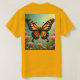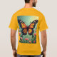Uma imagem brilhante e de alta resolução de uma borboleta vibrante, multicolorida, com um belo e intrincado design sobre suas asas, cercada por algumas flores e folhas colocadas estrategicamente. A borboleta deve ser representada em uma pose dinâmica e lúdica, como se estivesse prestes a voar, com suas asas espalhadas e seu corpo inclinado levemente para um lado. O humor geral da imagem é iluminado e humorístico, com foco em capturar o espírito livre da borboleta.