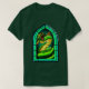 Uma t-shirt com um basilisco feito no estilo de uma janela de vidro manchado.