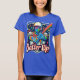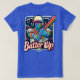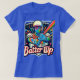 O design da t-shirt "Batter Up" apresenta uma cena dinâmica de baseball com uma ilustração arrojada e recheada de ação de um jogador a balançar um bastão. O jogador é capturado balançando médio, com linhas de energia enfatizando o movimento. Ao fundo, um diamante de beisebol sutilmente desaparece em vista, com as palavras "Batter Up" gravadas em negrito e com letra esportiva. O design é vibrante, com uma mistura de cores de equipe — como azul profundo e branco brilhante — criando um contraste poderoso. A camisa transmite o entusiasmo do jogo, perfeito para qualquer fã de beisebol.