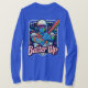 O design da t-shirt "Batter Up" apresenta uma cena dinâmica de baseball com uma ilustração arrojada e recheada de ação de um jogador a balançar um bastão. O jogador é capturado balançando médio, com linhas de energia enfatizando o movimento. Ao fundo, um diamante de beisebol sutilmente desaparece em vista, com as palavras "Batter Up" gravadas em negrito e com letra esportiva. O design é vibrante, com uma mistura de cores de equipe — como azul profundo e branco brilhante — criando um contraste poderoso. A camisa transmite o entusiasmo do jogo, perfeito para qualquer fã de beisebol.