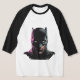 Camiseta Básica, Mangas Raglan 3/4, Branco/Preto, Adulto M