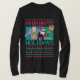 "Ha Ha Happy Holidays, With love Joker & Harley" está escrito neste gráfico festivo do estilo de suéter de Natal com o Joker e Harley Quinn segurando um presente embrulhado.