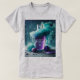 Uma design de camiseta criativa com uma representação moderna e elegante de um copo d'água. O copo está parcialmente cheio de água, rodeado de plasmas ou gotículas lúcidas para realçar o frescura. O texto "Beba para cima!" é estilizado em tipografia ousada e divertida, talvez com um efeito gradiente ou ondulado para corresponder ao tema da água.