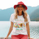Uma festa de solteira tropical na praia para comemorar sua última noite antes do casamento. Convide, aproveite e celebre com seus familiares e amigos mais próximos. Camiseta perfeita para um tema de coquetel de praia e uma turma de festa de solteira tropical. O design apresenta praia tropical, águas azuis, coquetéis, frutas tropicais e oceano. Facilmente personalizável com sua escolha de texto e script.