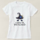 Esta divertida camiseta feminina de Halloween apresenta um rosto de bruxa fofo (um chapéu de bruxa azul com luas e estrelas douradas e um buquê azul, preto e dourado sobre um par de sobrancelhas arqueadas e pálpebras feitas com glitter azul). Abaixo, o texto preto diz "Beba, bruxas!" em uma fonte adequadamente assustadora. Uma camiseta ideal para sua festa de Halloween ou uma festa de despedida de solteira com tema de Halloween.