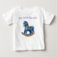 Conjunto de Natal azul festivo para bebê/criança com um cavalo de balanço decorado com luzes de Natal. Personalize com a caixa de texto editável acima – adicione o nome do seu filho ou mensagem de Natal para um conjunto de Natal fofo, presente ou foto.