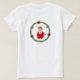 Bela festa de natal feliz, bebê e camiseta de pinho. A coroa de Natal é decorada com poinsetos, cones de pinho e bolas de Natal vermelhas. O bebê de Natal está segurando um coração significando que o Natal é sobre amor puro e divino! Que este amor divino seja o maior presente de todos!