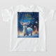 Baby Reindeer sobre uma paisagem estrelada de neve com boas-vindas de Natal