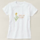 Anuncie sua gravidez com um símbolo simples de uma flor silvestre amarela com um botão no caminho para florescer e petite texto com o mês em que o bebê deverá estar nascer abaixo dele.