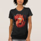 Camisa-T das mulheres do Dragão Bebendo de Cerveja. Design gráfico de uma cerveja de bebendo de dragão vermelho enquanto faz o sinal de metal pesado dos chifres com a mão. Engraçado ilustração para amantes de cerveja.
