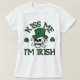 Características de design do dia deste St Patrick engraçado um crânio e crossbones que vestem um chapéu alto verde grande com um trevo na parte dianteira. O subtítulo lê "beija-me que eu sou irlandês" no grande texto verde.