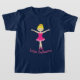 Uma bela bailarina com cabelo loiro em um tutu rosa brilhante se preparando para girar e girar. O texto diz "pequena bailarina" que você pode personalizar com o nome da criança. Um adorável e doce design de chá para meninas. Paixão pela dança e balé começa jovem!