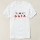 Mostra quatro flores vermelhas, incluindo uma flor de Hibiscus, e a palavra "Havaí" acima em texto elegante. Para os havaianos, visitantes, turistas, americanos, jardineiros, para se lembrarem de férias ou do espírito do Havaí. Entre no espírito aloha com esta design adorável.