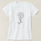 Um dachshund baleado e flutuando acoplado a balões do valor de uma festa é o design que decora esta camisa.