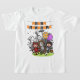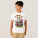 Feliz Camiseta Laranja Preta do Dia das Bruxas Divirta-se com este Texto Personalizado Feliz Design Laranja Negro do Dia das Bruxas. Apresenta uma casa assombrada e silhuetas de árvores, lua de cheio, morcegos e ilustrações de abóbora. Personalize com seu texto personalizado.