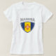 A bandeira nacional da Madeira é impregnada em forma de escudo e colocada abaixo do nome do país.