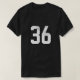 Impressão frontal número 36. Para a equipe desportiva, uniforme escolar, camisa número 36 fãs, cheerleaderes, capitão da equipe, mãe, pai e crianças.