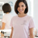Camiseta Blush Pink Script Staff Name Business Logo Makeup